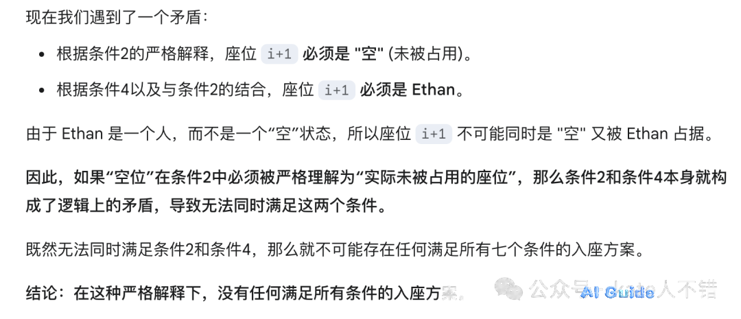 - Result: DeepSeek spent 10+ minutes transparently deriving (flawed) solutions. Gemini later concluded no valid solution exists under strict “vacant seat” interpretation—highlighting ambiguity in language understanding.