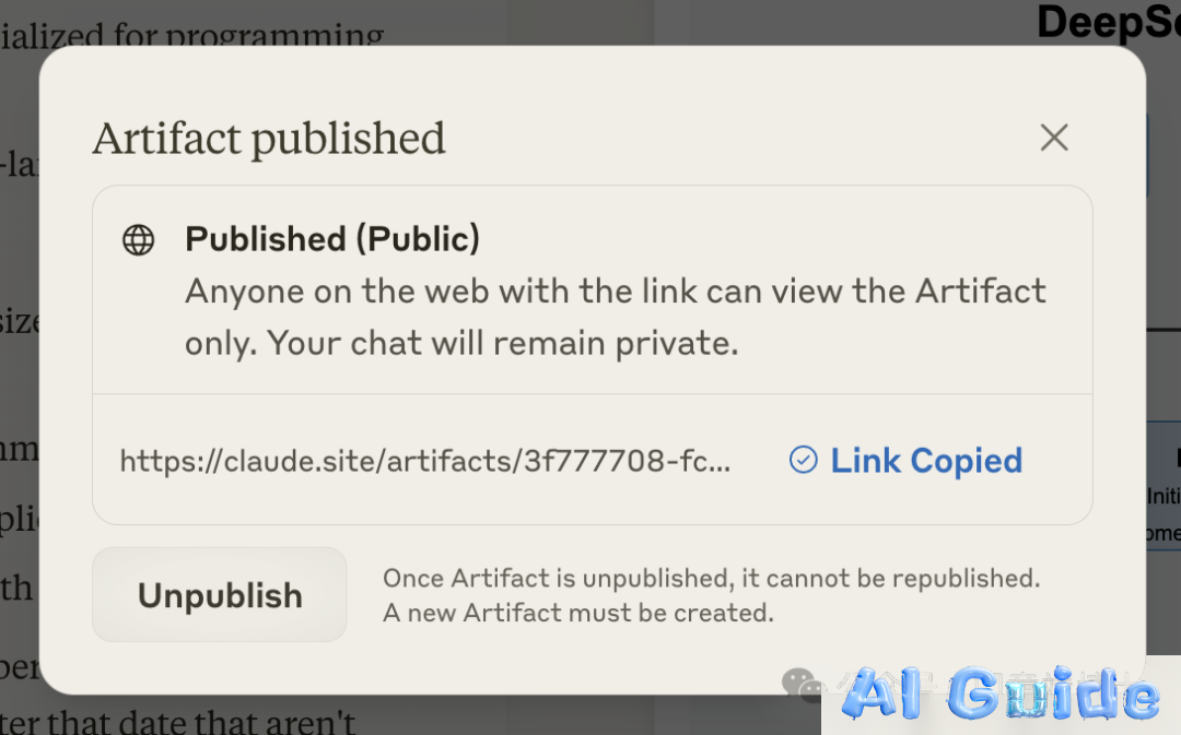 - Generate shareable URLs (e.g., claude.site/artifacts/3f777708…)